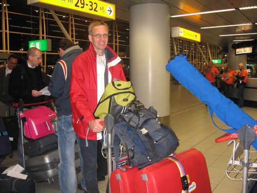 Daarna lopen we door naar bagageband 3 en we zien direct onze koffers voorbij komen! Dat is snel! Daarna met de koffers langs de douane. We verwachten weer een circus aan vragen en/of doorzoekingen, maar na een globale blik in de paspoorten mogen we door en verzamelen we ons bij de mensen van Krooder.