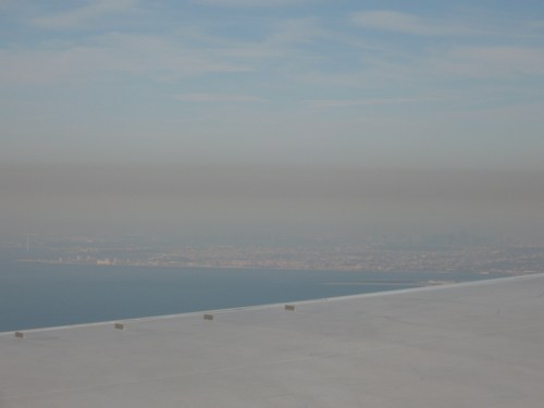 Deze dag is ook nog eens Haloween in Amerika. Eén van de stewardessen had zich op het eind van de vlucht al een beetje verkleed, maar toen we naar de bus liepen kwamen er een aantal jongelui voorbij, waarvan de voorste een een nepbaard had en was gekleed als jood, riep hij iets van: "Attention, Rabby passing by!"
