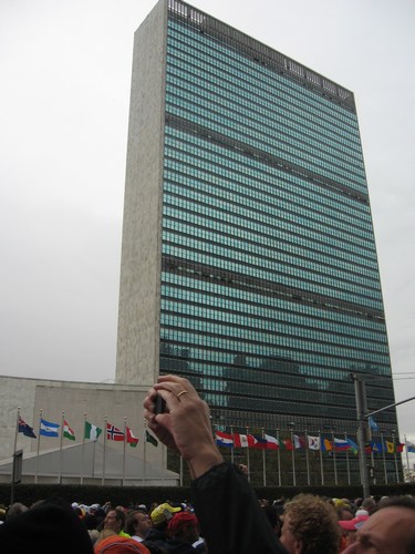 het hotel om wandelend naar het gebouw van de Verenigde Naties