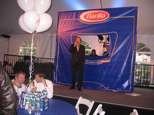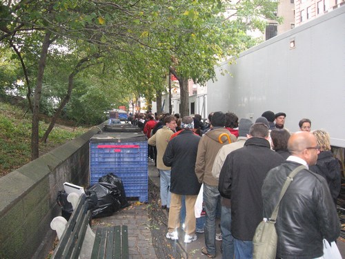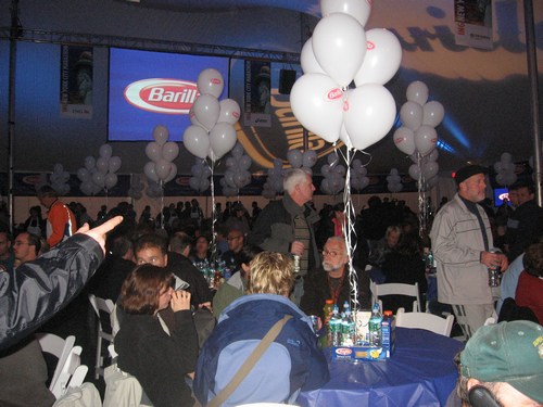 staat namelijk een enorme rij voor de tent waar de Pasta Party